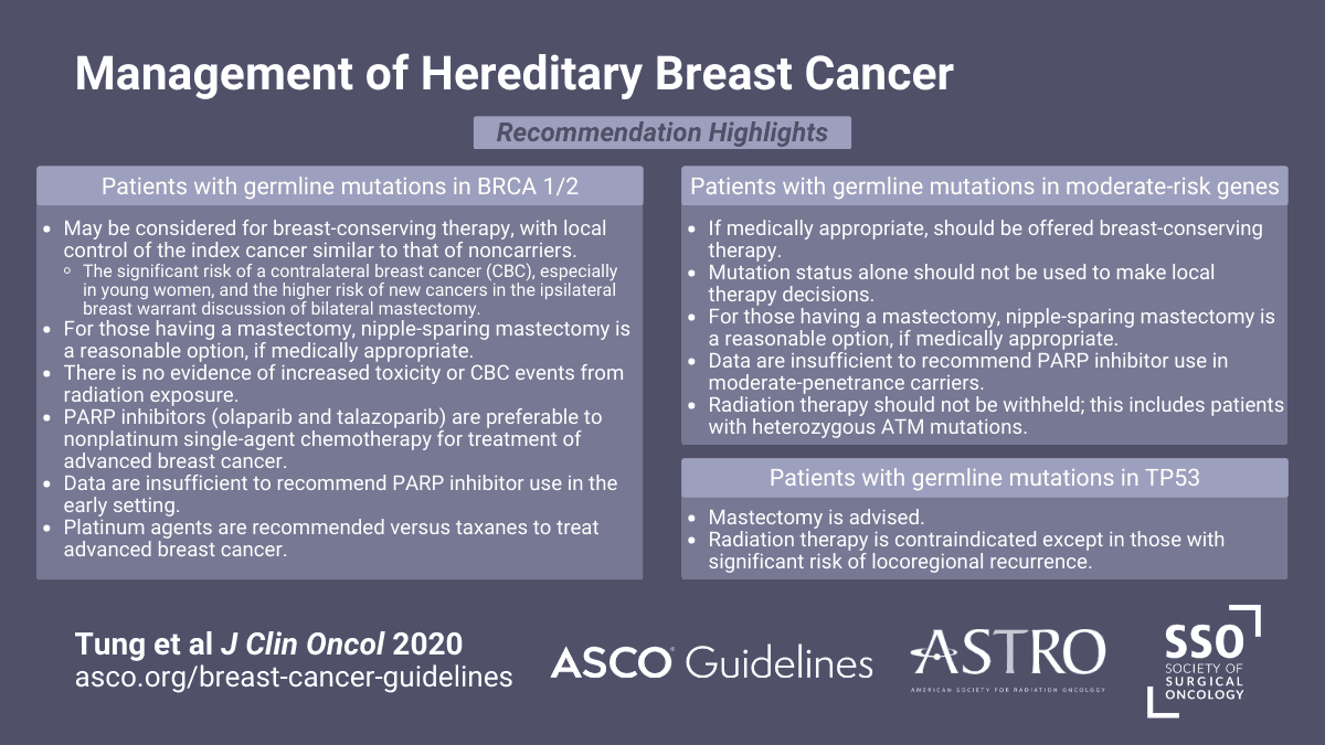 Management of Hereditary Breast Cancer: ASCO, ASTRO and SSO Guideline – April 2020